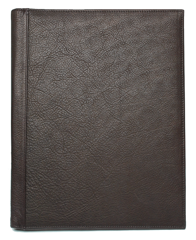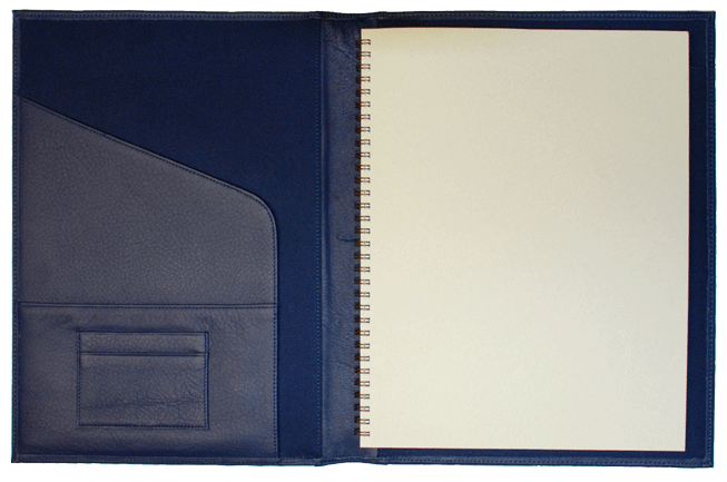 Features : Genuine full-grain leather cover, foam-padded, with completely hand stitched and turned edges. Interior pockets, a document flap and pen slot. A 160 page ruled or blank notebook is included.