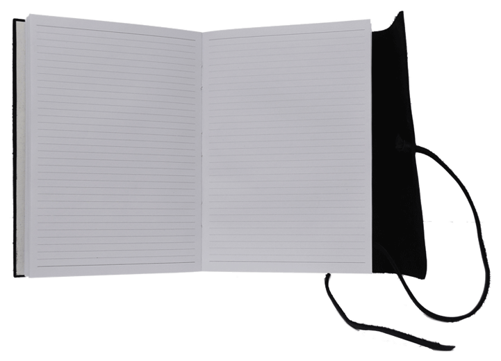 Features : Handmade full grain belting leather journal with wrap tie closure. 160 ruled white journal pages with a personal information top sheet on the top. The case-bound journal is securely glued in.